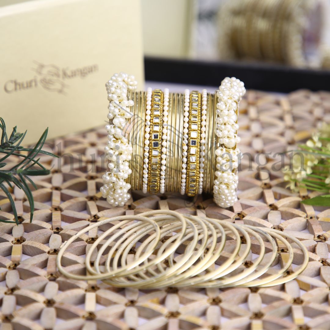 Plain Metal Gajra Kundan Set – Ivory Cream